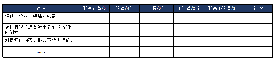 - 最后,用尽可能详细的标准来描述每个项目的每个水平,要求标准清晰、易操作。