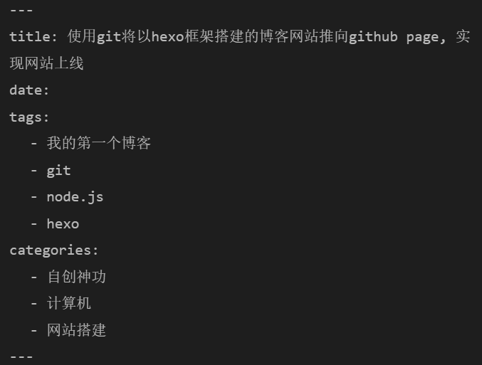 或者直接在_post文件夹中新建md文件进行编辑,不过每个md文件开头一定要有yml头才能发布,缩进也是两空格。