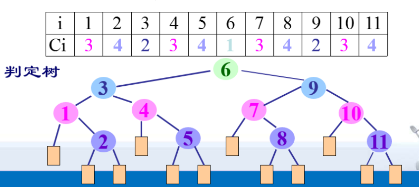 其中:n为表长,P:为查找表中第i个记录的概率,且∑P=1,Ci为找到该记录时,曾和给定值比较过的关键字的个数。