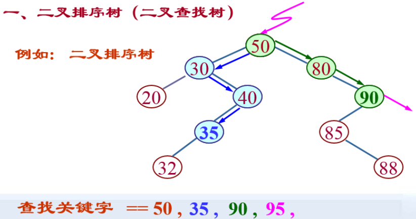对于每一棵特定的二叉排序树,均可按照平均查找长度的定义来求它的ASL值,显然,由值相同的个关键字,构造所得的不同形态的各棵二叉排序树的平均查找长度的值不同,甚至可能差别很大。