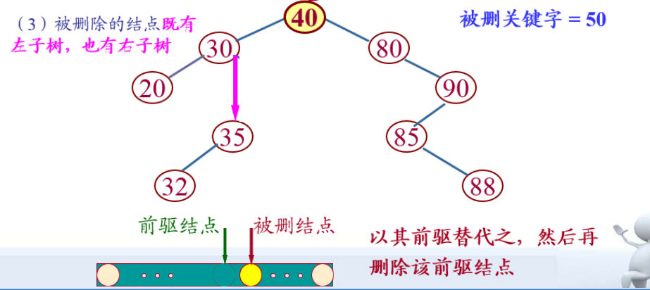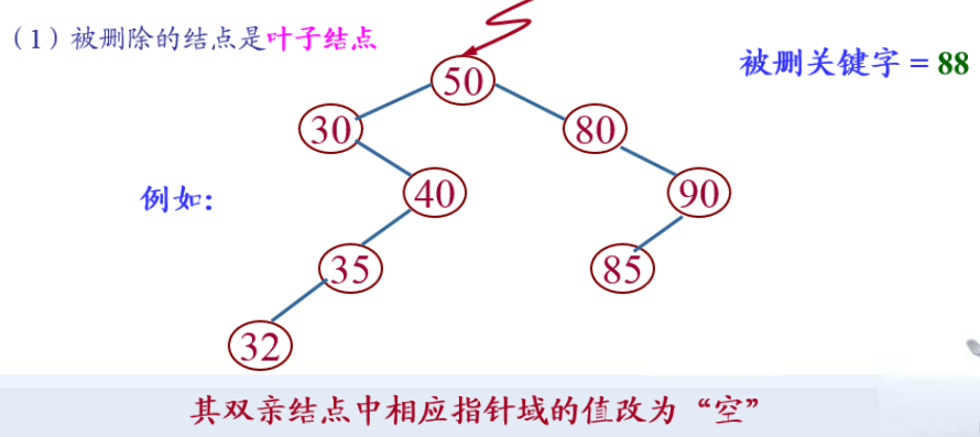 和插入相反,删除在查找成功之后进行,并且要求在删除二叉排序树上某个结点之后,仍然保持二叉排序树的特性。
