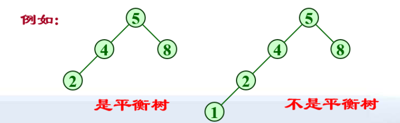 树中每个结点的左、右子树深度之差的绝对值不大于1。