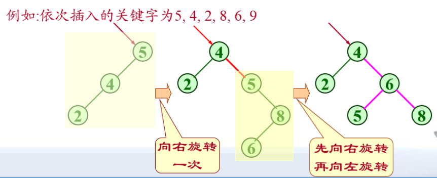 构造二叉平衡(查找)树的方法是:在插入过程中,采用平衡旋转技术。