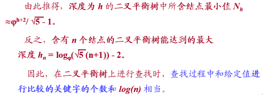 平衡树的查找性能分析:在平衡树上进行查找的过程和二叉排序树相同,因此,查找过程中和给定值进行比较的关键字的个数不超过平衡树的深度。