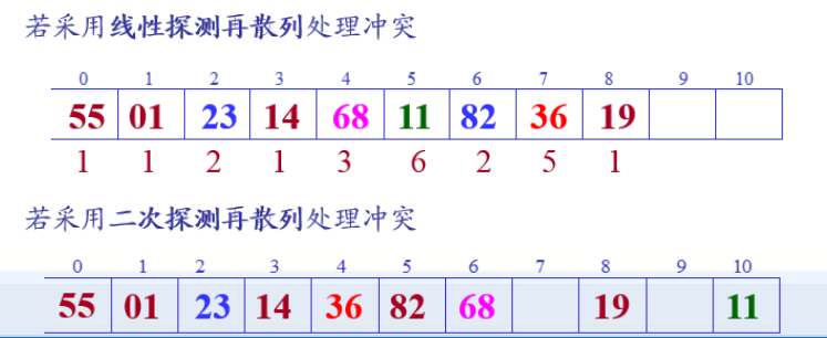 “处理冲突”的实际含义是:为产生冲突的地址寻找下一个哈希地址。