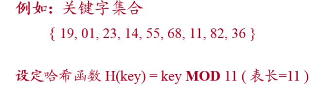 - 设定哈希函数为: H(key)=key MOD p 其中,p≤m(表长)并且p应为不大于m的素数或是不含20以下的质因子