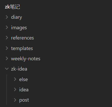 顾名思义,分别存放着日记、图片(附件)、参考资料、笔记模板、周记与zk笔记。