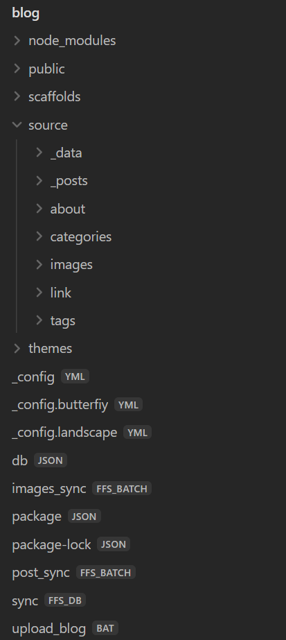 其他的不用管,只看 source 文件夹里面的_post 与 images,这两个就是博客文章及其图片的存放文件夹。