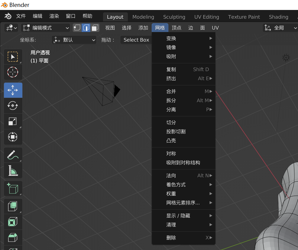 对于这种对称的模型可以先做某一侧,做完后可以使用(编辑模式下)网格-对称完成两侧的对称,使用前需要打开透明模式(alt+z),选择所有的点线面
