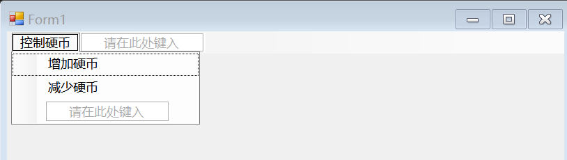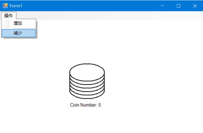 5.添加菜单控件并为其添加单击事件,以实现硬币数量的增加和减少。
