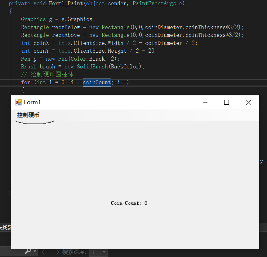 发现在将循环次数改为coinCount之后绘制出的图形有明显偏差,而改为2就会十分正常,经检查这是因为coinCount初始值为0,循环可能因此出现了些问题。